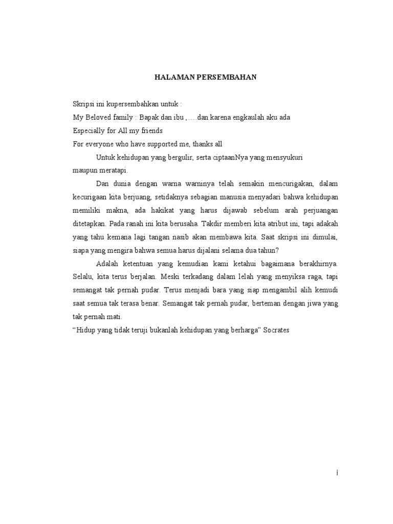 Paulus memperoleh ideologi yang benar Fil 38. Orang tersayang di sini tidak harus pasangan lho. Contoh halaman persembahan skripsi prakata syukur alhamdulillah ke hadirat allah swt a tas segala rahmat dan karunia nya sehingga skripsi yang berjudul pandangan dunia ayu sutarto dalam novel mengejar matahari pagi dapat terselesaikan dengan baik.